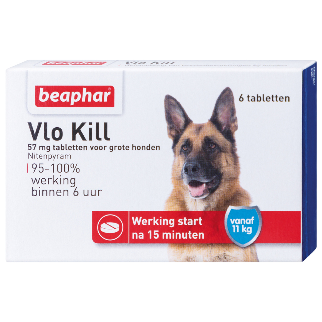 Vlo Kill+ doodt razendsnel vlooien die op de hond zitten, de tablet begint binnen 15 minuten te werken en in 6 uur zijn alle vlooien die op het dier zaten dood. Vlo Kill+ werkt 24 uur en mag daarna herhaald worden. Geschikt voor honden vanaf 4 weken en een een gewicht vanaf 11kg