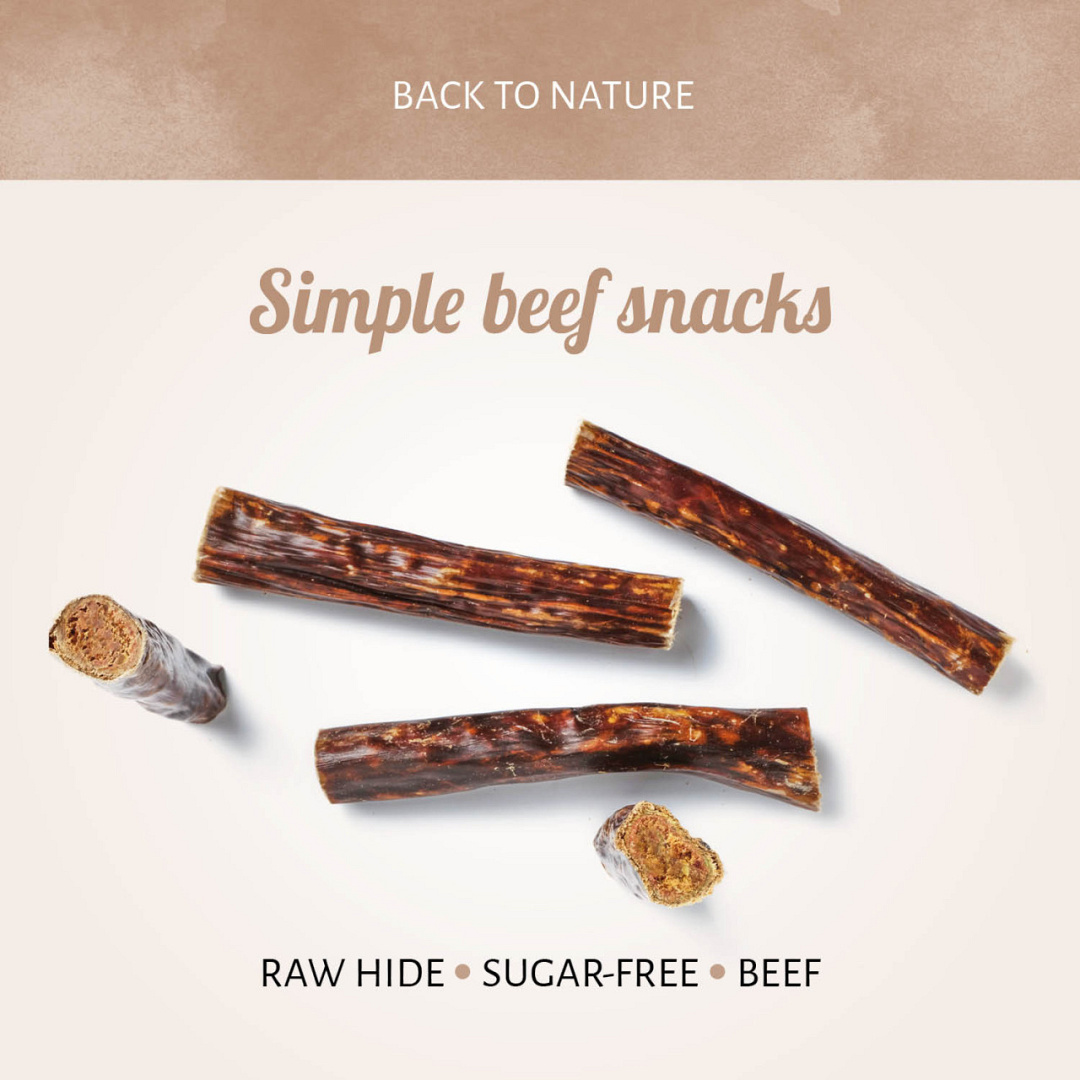 Natuurlijke kauwsnack van runderhuid gevuld met rund.