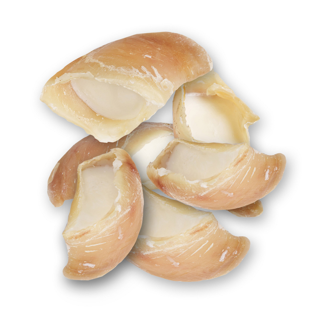 Natuurlijke hondensnack van een kauwhoefje gevuld met schapenvet.