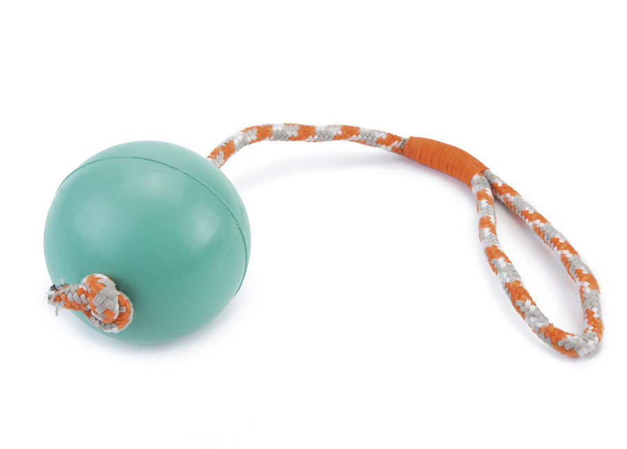 Rubberen bal met koord om hem lekker ver weg te slingeren.