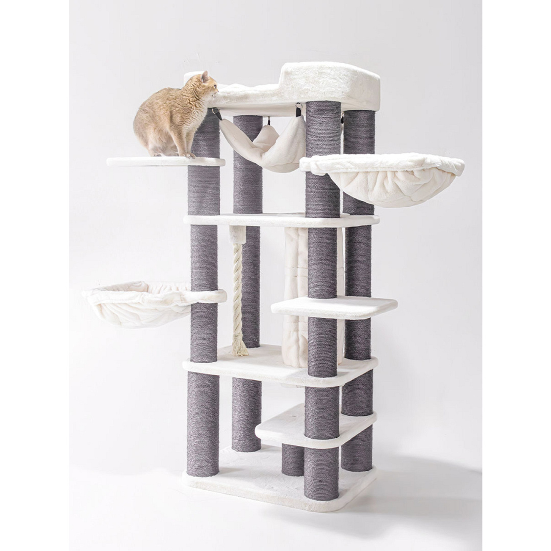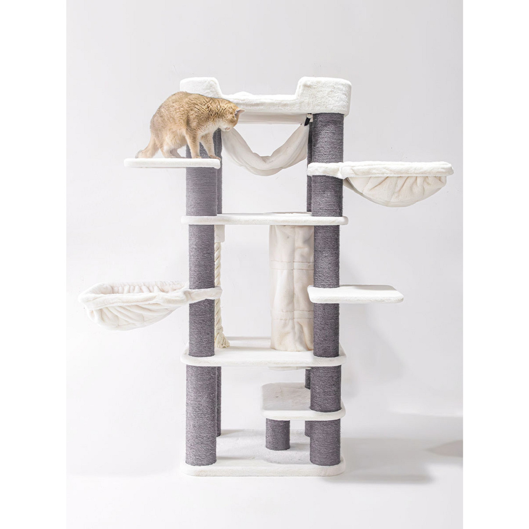 Extra groot krabmeubel met o.a. 3 hangmatten, een speeltunnel en een heerlijke XXL-loungemand. Afm. 78 x 58 x 185 cm.