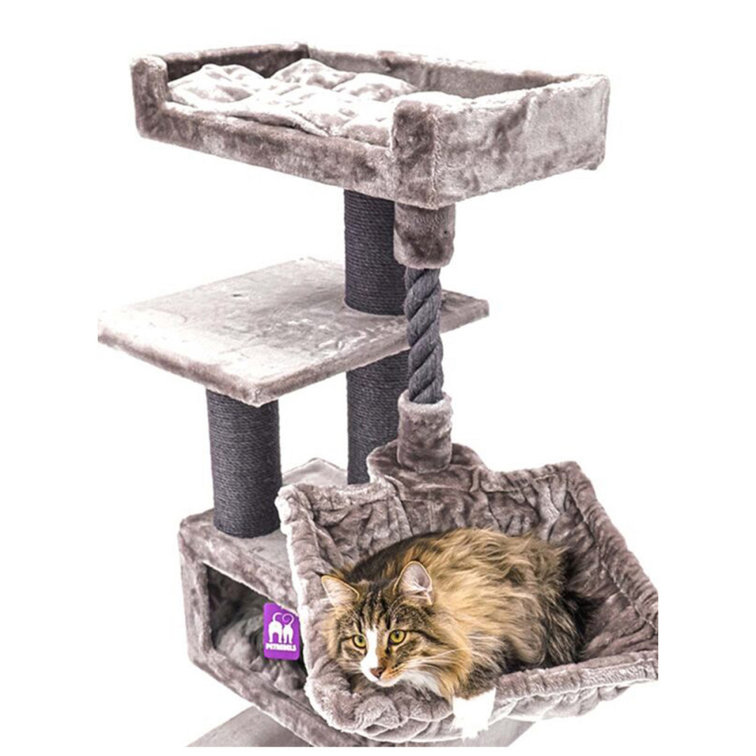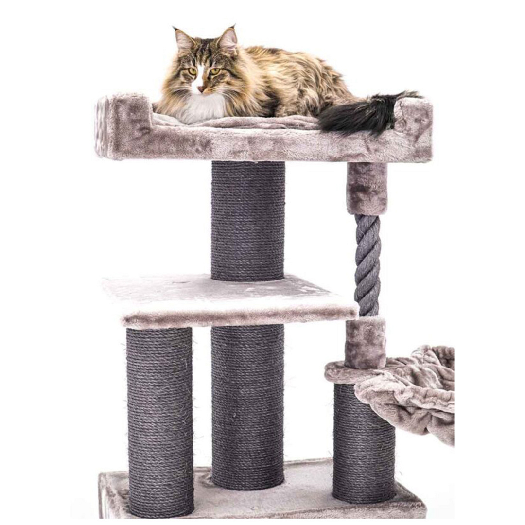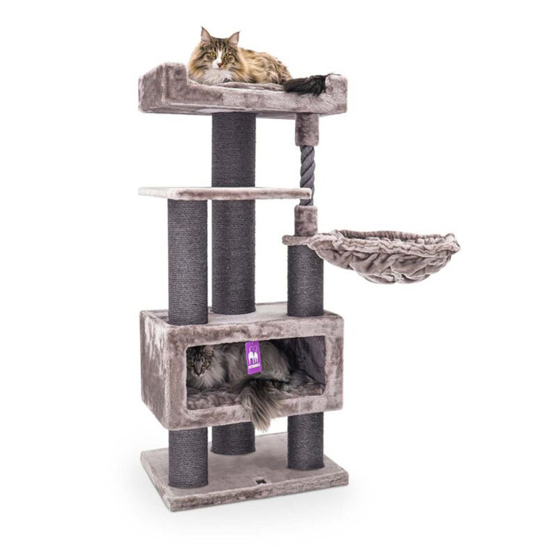 Een robuust en luxe krabmeubel met extra stabiele bodemplaat, sterk sisal en royale ligplekken van extra zacht pluche. Afm. 58 x 45 x 131 cm.
