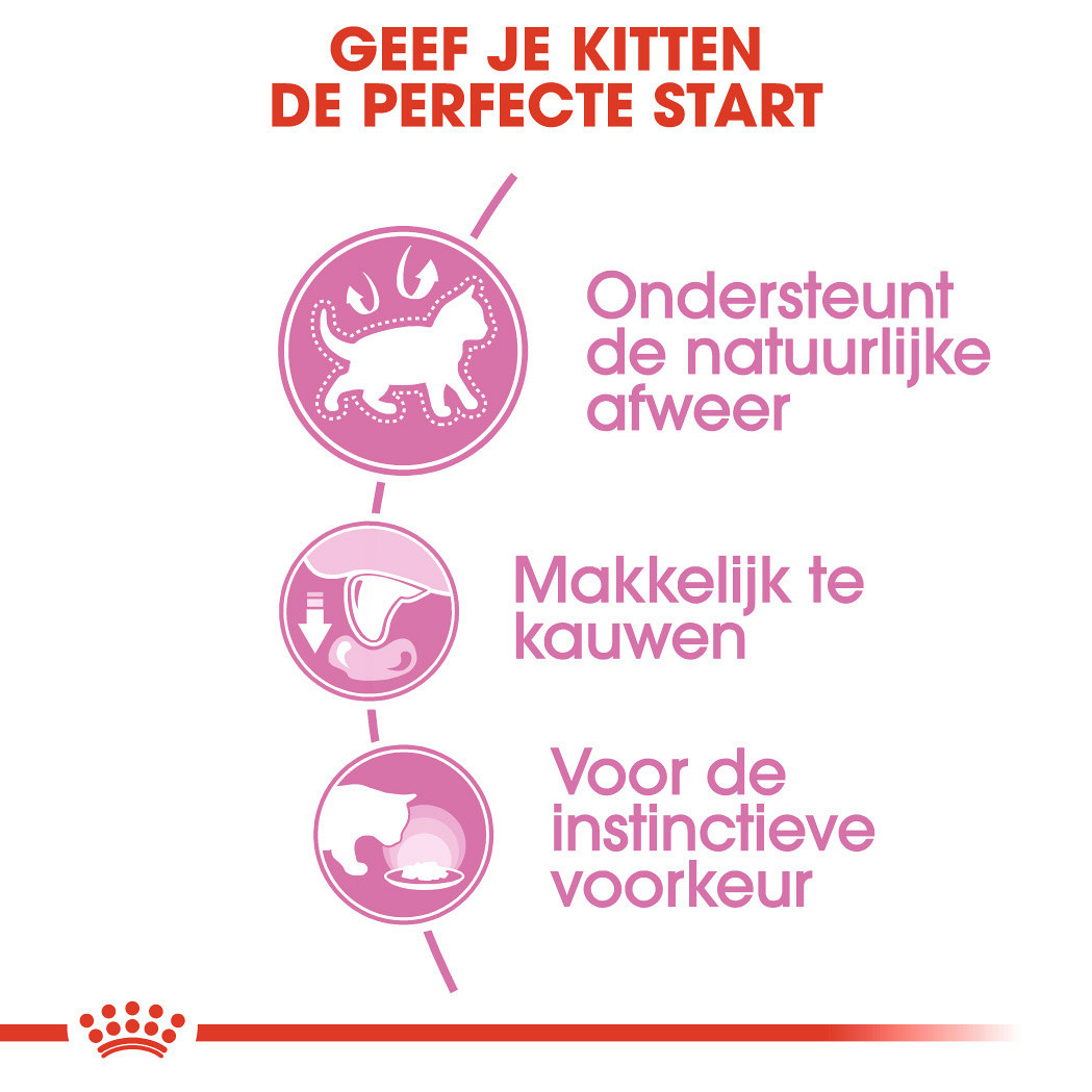 Kitten bevat ingrediënten waar 30% van de kittens van 4 tot 12 maanden instinctief de voorkeur aan geven. De grootte en de structuur van de brokjes zijn aangepast aan de kleine kaak van de kitten. De voedingsstoffen helpen de natuurlijke weerstand van je kitten te ondersteunen. En dat het lekker is, dat zie je meteen aan ze! Daarnaast is Kitten Instinctive ook uitstekend geschikt voor drachtige poezen.