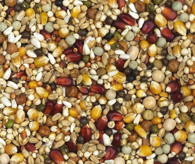 Een zeer gevarieerde samenstelling, rijk aan oliehoudende zaden, wat de rui bevordert.