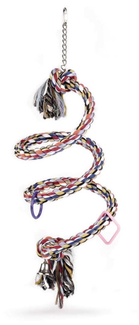 Een stevige grote katoenen spiraal inclusief bel en ophangketting. Een aanwinst voor in uw papegaaienkooi. Voor urenlang speelplezier.